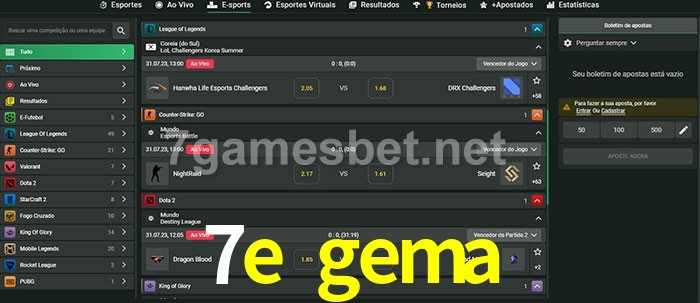 O 7e gema oferece uma grande seleção de opções de apostas em e-sports com probabilidades competitivas